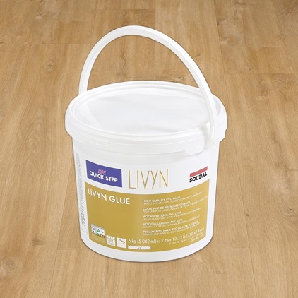 Jeśli wolisz bardziej tradycyjne metody, na pewno spodoba Ci się metoda montażu „na klej”. Także ona nie sprawia trudności: jedyne, co będzie Ci potrzebne to klej do podłóg Livyn Quick-Step — specjalny produkt opracowany wraz z firmą Soudal.