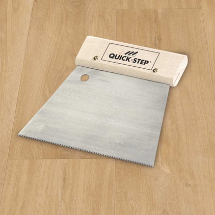 Jeśli wolisz bardziej tradycyjne metody, na pewno spodoba Ci się metoda montażu „na klej”. Także ona nie sprawia trudności: jedyne, co będzie Ci potrzebne to klej do podłóg Livyn Quick-Step — specjalny produk