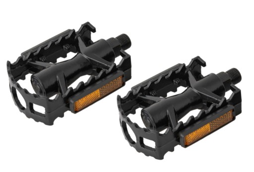 Pedały o korpusie wykonanym z aluminium wyposażone w odblaski. Pedały posiadają łożyska kulkowe. Posiadają standardowy gwint 9/16 '. Kolor czarno-szary