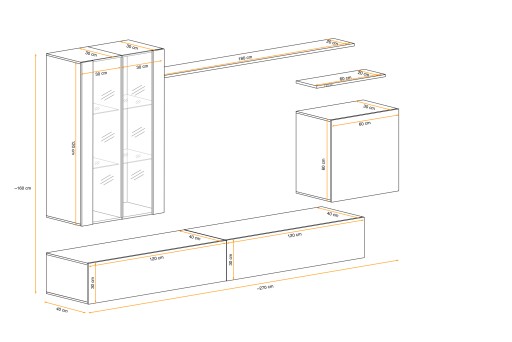Wymiary całkowite (S/W/G): ~270cm / ~160cm / 40 cm