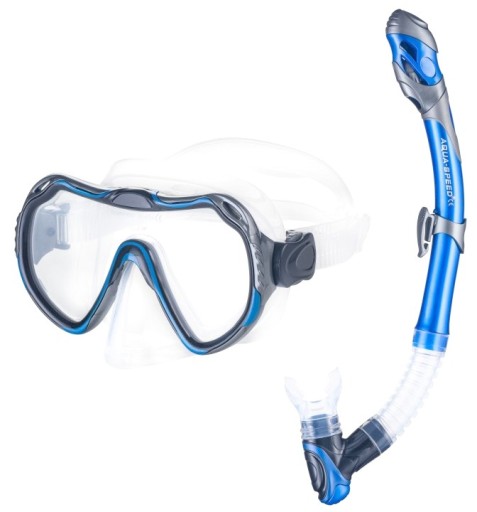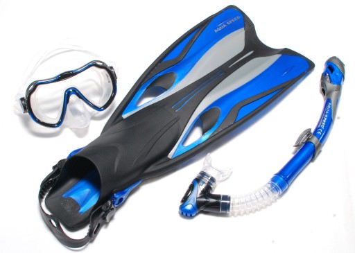 ZESTAW ABC AQUA-SPEED : maska JAVA z zaworkiem nosowym+ "sucha" fajka ELBA+płetwy regulowane SWIFT rozm 38/41 dł płetwy 54 cm