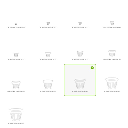 - Średnica samego otworu doniczki (bez kołnierza): 44 cm