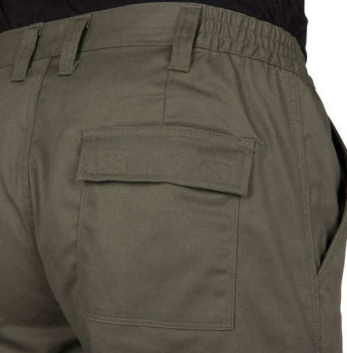Spodnie nie szeleszczą , są ciche i dobrze skrojone, posiadają półelastyczny ściągacz w pasie oraz liczne kieszenie.