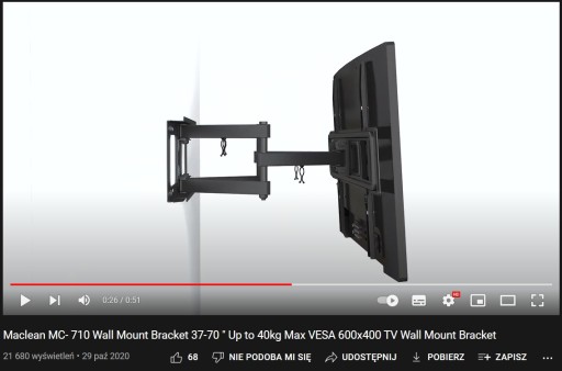 - Uchwyt Maclean MC-760 do telewizora lub monitora 26-55" 30 kg