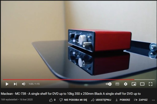 Półka szklana dedykowana urządzeniom RTV c dekoderom telewizyjnym, odtwarzaczom multimedialnym, DVD, Blu-ray, konsolom do gier i innym.