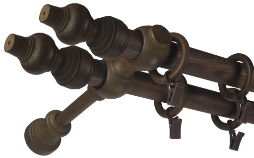 Деревянный карниз fi 28 двойной 4,0 м 400 см Цвет концовок на выбор
