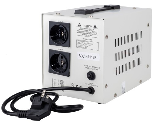 - Stabilizator automatycznie obniża wysokie i podnosi zbyt niskie napięcie do właściwego poziomu. W przypadku wysokiego napięcia, stabilizator obniża je. Jeżeli napięcie stale rośnie stabilizator odłącza urządzenie od sieci.