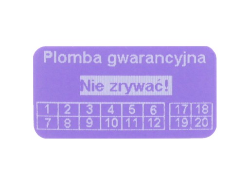 Oferujemy wykonanie 250 sztuk plomb gwarancyjnych w rozmiarze 20x10mm, z folii PURPUROWY VOID.