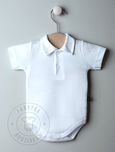 Przedmiotem sprzedaży jest gładkie bawełniane body z kołnierzykiem z krótkim rękawem w rozmiarze 86