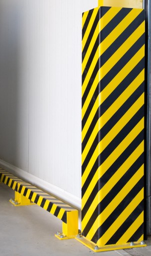 Bariera ochronna metalowa może służyć jako osłona nóg regałów, rur spustowych, bram wjazdowych, drzwi chłodniczych, obiektów przechowalniczych.