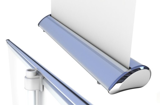 Roll-Up Exclusive posiada bardzo elegancką i stylową konstrukcję, a dzięki odpowiedniej szerokości kasety pozbawiony jest nóżek podpierających. Rollup ten posiada futerał transportowy z możliwością przewieszenia go przez ramię. Jest to produkt klasy premium, który przy zastosowaniu kilku tych systemów obok siebie może stworzyć samodzielne stoisko targowe lub ściankę reklamową.