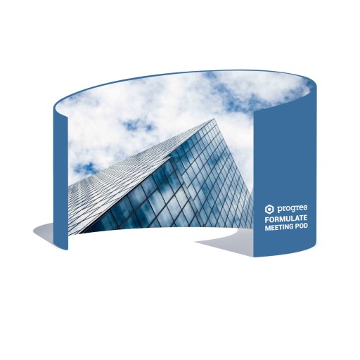 Formulate Meeting Pod to system, który wyróżnia się nietypowym kształtem dzięki czemu pozwoli stworzyć idealne tło niezależnie od miejsca i powierzchni. Dzięki zastosowaniu specjalnego, rozciągliwego materiału, grafika doskonale układa się na systemie, tworząc niepowtarzalną, harmonijną całość.
