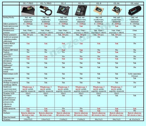 TABELE PORÓWNAWCZE MIERNIKÓW