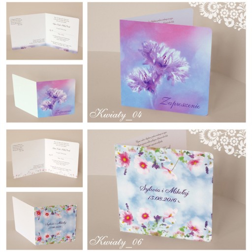 - UWAGA! W tej aukcji narożniki sprzedawanych zaproszeń są proste; Wszystkie zdjęcia pokazują opcje rożkowaną niedostępną w tym wariancie.