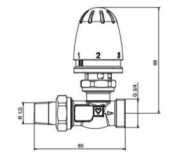 ГЕРЦ КЛАПАН RTL для напольного покрытия прямой + мини-ГОЛОВКА
