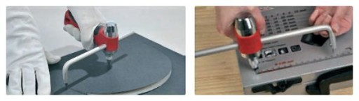 Zakupując kompletny cyrkiel CC 420 PA, CC 620 PA lub samą rączkę do cyrkli PACC dodatkowe, zapasowe ostrze znajdziesz pod dekielkiem uchwytu.