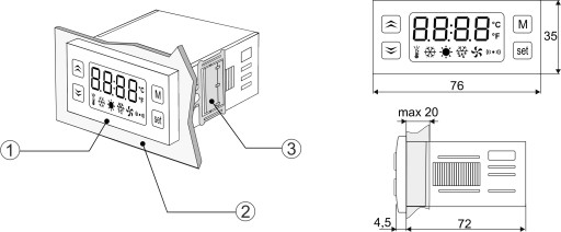 - Montaż w otworze o wymiarach 71 x 29 mm, maksymalna grubość ścianki tablicy 20mm
