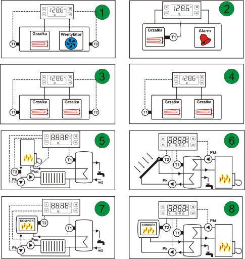 Regulator może realizować zarówno prosty, pojedynczy lub podwójny układ grzewczy, czy chłodniczy jak i bardziej rozbudowaną aplikację.