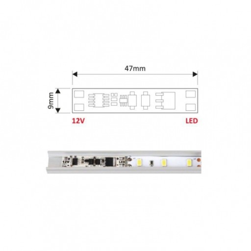 WYŁĄCZNIK DOTYKOWY DO PROFILI LED o maksymalnej mocy obciążenia 60W.