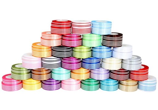 Błyszcząca i sztywna wstążka satynowa o szerokości 3mm i długości 91 metrów.