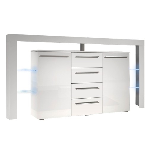 - na bokach komody znajdują się szklane półki podświetlane oświetleniem LED w kolorze niebieskim