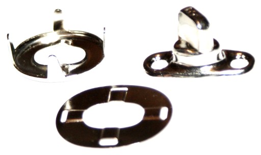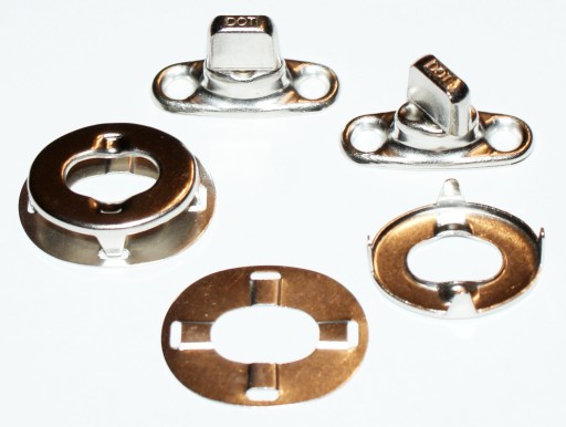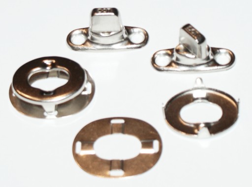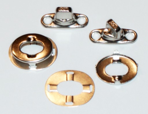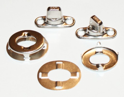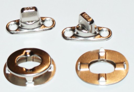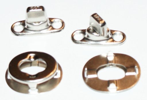 W zestawie zamknięcie obrotowe, remizka/oczko owal i podkładka z nacięciami do łapek remizki.