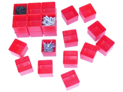 W tej ofercie kupisz pojemnik o wymiarach 54x54x63 mm w kolorze czerwonym.