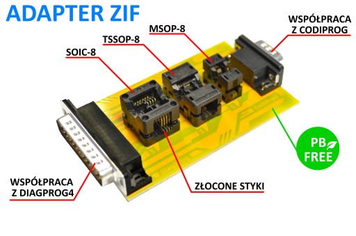 - Adapter ZIF zawiera 3 podstawki renomowanych producentów Enplas oraz Wells / Sensata:
