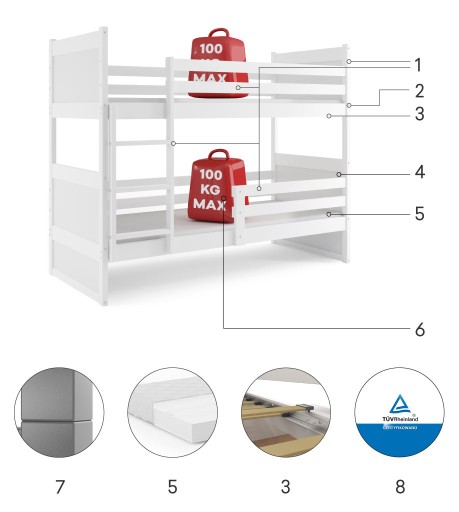 - Certyfikowane łóżko- jakość i bezpieczeństwo zgodnie z normami TUV.