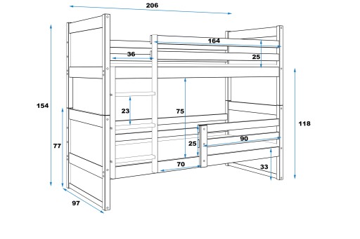 - Rama łóżka z drewna sosnowego pomalowana lakierem wodnym.