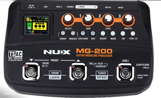 Kompaktowy efekt z pełnym DSP, modelowaniem analogowym, auto-tunerem, kolorowym wyświetlaczem LCD z podświetleniem i pedałem ekspresji. Tryb Jam ma wbudowany automat perkusyjny. Można korzystać z różnych ustawień stylu i nagrywania / nadpisywania / oraz mixu. NUX MG -200 może funkcjonować jako szkicownik do prototypowania kompletnych utworów. W sumie 8 efektów może być włączonych jednocześnie.