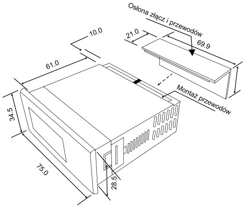 - Montaż w otworze o wymiarach: 72 x 30mm