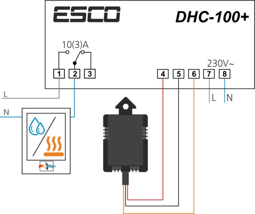 Higrostat elektroniczny z czujnikiem na przewodzie. Posiada cyfrowy odczyt wilgotności oraz funkcję kalibracji wskazań. Zastosowano metodę regulacji załącz/wyłącz (ON-OFF) z regulowaną histerezą. Wyposażony jest w wyjście sterujące przekaźnikowe 10A. Tryb pracy: "nawilżanie" lub "osuszanie" wybiera się w menu. Dodatkowo zaopatrzony jest w alarm dźwiękowy oraz funkcje pracy awaryjnej w przypadku uszkodzenia czujnika wilgotności. Montaż w tablicy za pomocą uchwytów mocujących.