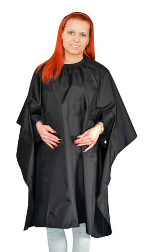 Dość obszerna, szeroka i długa peleryna fryzjerska. Jej najważniejszą właściwością jest to, że jest nieprzemakalna. Uszyto ją z dobrej jakości poliestru, który nie dopuszcza do wbijania się pod spód obcinanych włosów i jednocześnie zapewnia wodoodporność, więc podczas mycia jest naprawdę komfortowa w użyciu. Posiada odpowiednio wyprofilowane wycięcia na ręce. Zapinana na szyi plastikowymi zapięciami. Dostępna w różnych kolorach. Bardzo przyjemna w dotyku, z pewnością zapewni wygodę w czasie noszenia.