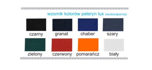 Kolory: Czarny, Granatowy, Chabrowy, Szary, Zielony, Czerwony, Pomarańczowy, Biały,