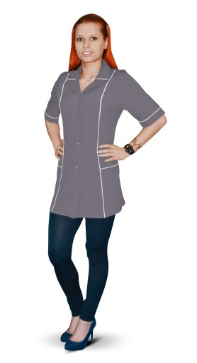 Fartuch Iza został stworzony z myślą o paniach pracujących w służbie zdrowia. Zarówno pielęgniarki, jak i lekarze będą z niego zadowoleni.
