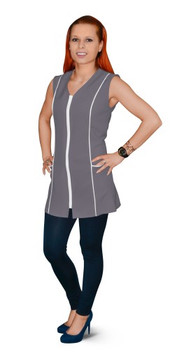 Fartuch ma dekolt z wycięciem w serek, dzięki czemu świetnie się układa.