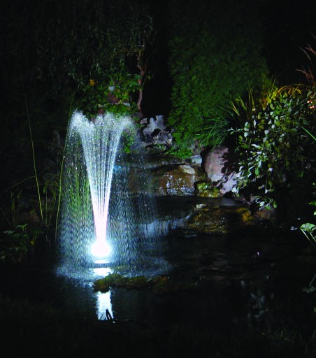 Pompa oraz oświetlenie mają oddzielne zasilanie dzięki czemu lampę można włączyć dopiero wieczorem, kiedy efekt jej działania będzie widoczny.
