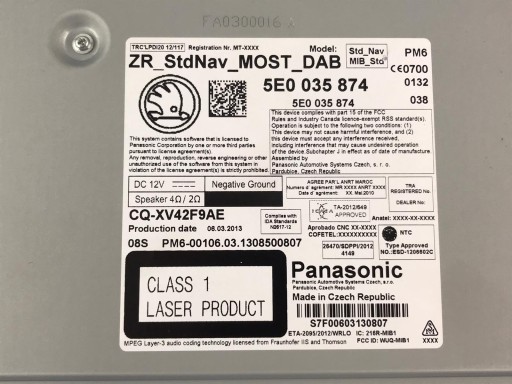 Oryg. Skoda sterownik elektroniki układów informacyjnych, Multimedia SKODA posiada czytnik kart SD1, SD2,CD produkcji Panasonic, stosowany w: