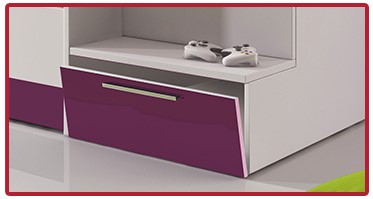 Łóżko cechuję się nowoczesnym wzornictwem oraz precyzyjną jakością wykonania, zapewnia wyjątkowo dobry sen oraz gwarancję bezpieczeństwa i pewność, że Twoje dziecko obudzi się wypoczęte. Fronty zestawu są wykonane z płyty meblowej MDF na wysoki połysk w bogatej kolorystyce, która pozwoli dopasować mebel do każdego pokoju. Górna powierzchnia spania oraz schodki przy łóżku wyposażone są w barierki, chroniące twoje dziecko przed wypadnięciem.