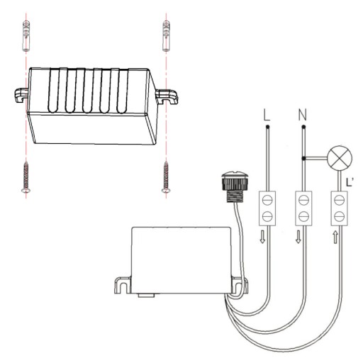 - LUX - Regulacji progu natężenia światła, przy którym czujnik ma załączać oświetlenie LUX: <5-50 lux