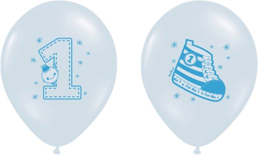 Przedmiotem aukcji jest prześliczny balon 30 cm Balon Trampek - Number 1 z niebieskim dwustronnym nadrukiem