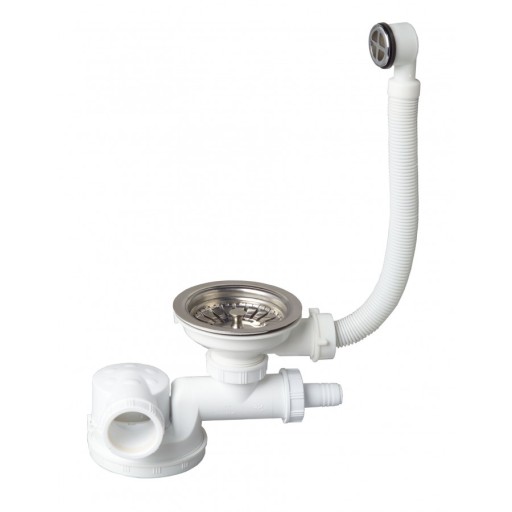 Syfon do zlewozmywaka pojedynczy niski z przelewem okrągłym, wyjściem do podłączenia zmywarki lub pralki firmy WIRQUIN