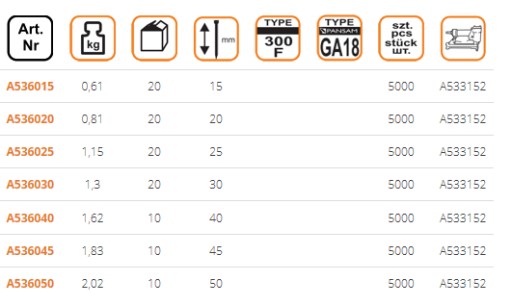 GWOŹDZIE GWOŹDZIARKA Długość 15mm Ga18 A536015