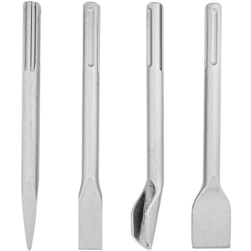 Wysokiej jakości 4 elementowy zestaw dłut do betonu. Dłuta pasują do każdego urządzenia wyposażonego w uchwyt SDS MAX.
