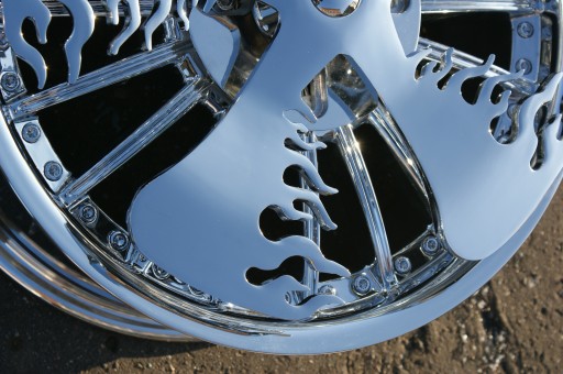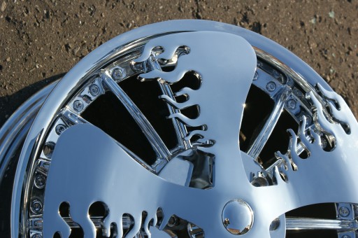 Aukcja dotyczy kompletu nowych aluminiowych chromowanych spinerów do felg amerykańskiej firmy MEGA SPINWHEEL.