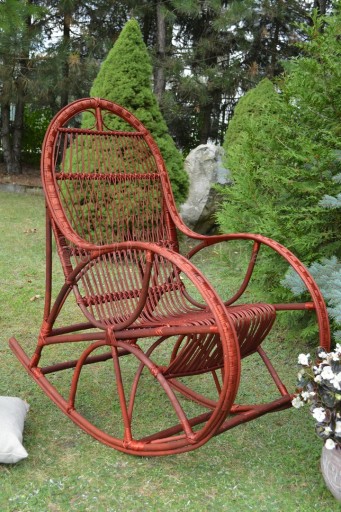 Fotel bujany 'LORD wiśnia' wykonany ręcznie z naturalnej wikliny. Idealnie wyważony i wyprofilowany.