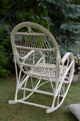 Fotel bujany 'LORD' - kolor naturalna biel wykonany ręcznie z naturalnej wikliny. Idealnie wyważony i wyprofilowany.