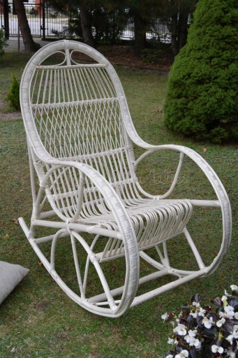 Fotel bujany 'LORD' - kolor naturalna biel wykonany ręcznie z naturalnej wikliny. Idealnie wyważony i wyprofilowany.