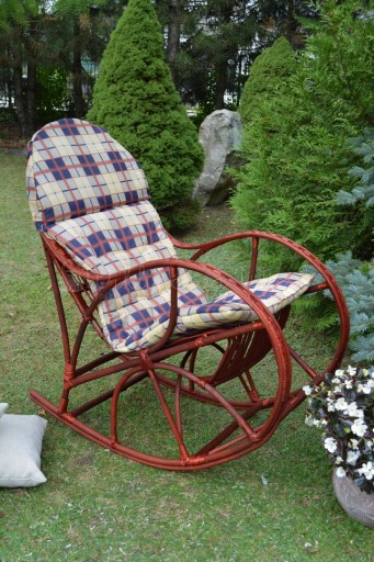 Fotel bujany 'LORD wiśnia' wykonany ręcznie z naturalnej wikliny. Idealnie wyważony i wyprofilowany.